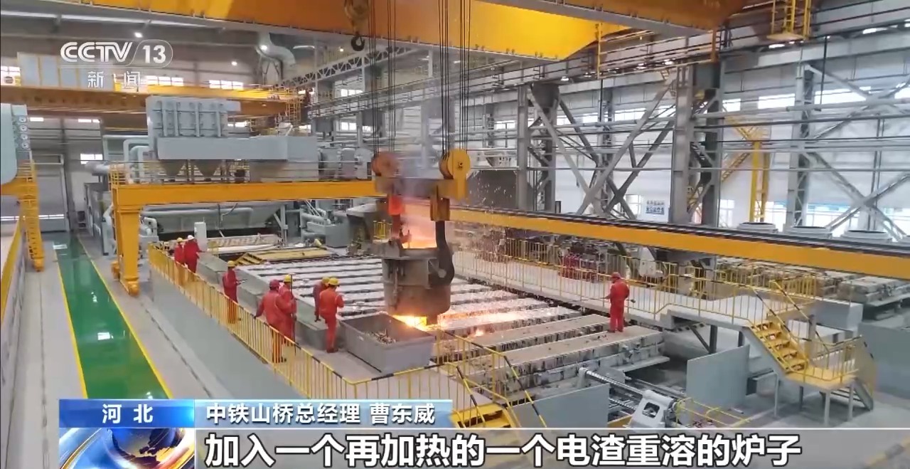 中鐵山橋總經(jīng)理 曹東威:一個是真空精煉爐, 也就是說去除有害的氣體,氫、氮、氧。還有在冶煉的后續(xù)環(huán)節(jié)加入一個再加熱的電渣重熔爐子,這樣整個出鋼水的質量等級會大幅提高。